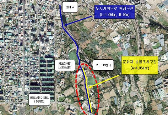제주시에서는 외도장애인스포츠센터 진입로(소로1-13) 도시계획도로 확장사업 시행 이전 사업 예정부지 및 주변의 문화재 보존 및 보호를 위하여 문화재 발굴조사 용역을 1월중 시행 계획이라고 밝혔다.
