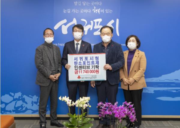 서귀포시는 관내 취약계층 가구에게 탄소포인트제 인센티브(제주사랑상품권 미수령분 1,517매) 11,740천원 상당의 상품권을 제주사회복지공동모금회로 지정 기탁했다고 밝혔다.