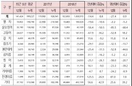 주요 어종별 증감양상을 살펴보면, 고등어, 전갱이류, 참조기 등의 생산량이 전년 대비 크게 증가했고, 가자미류, 갈치, 꽃게, 멸치, 삼치류는 전년 수준으로 나타났다.