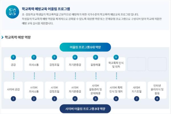 도내 모든 학교에서는 학급단위로‘코로나19 상황을 반영, 대면·비대면의 방법으로 학교폭력 예방 어울림 프로그램’을 운영할 예정이다. 도교육청은 학급 단위 6차시 이상 운영을 권장했다.