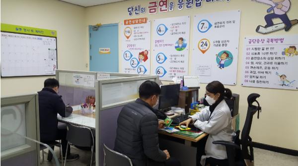 금연클리닉 첫 등록 시 상담 및 금연보조제 제공은 물론 코 로나19 추세에 따라 드라이브스루 운영, 맞춤형 1:1상담, 전 화, 문자 서비스를 제공하여 금연 결심부터 성공까지 꾸준히 지원하고 있다.