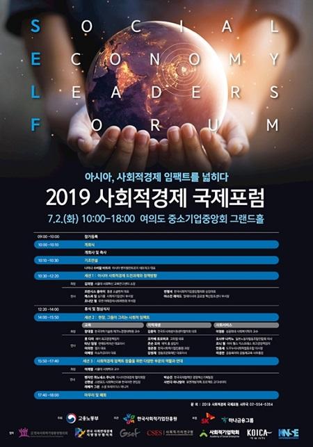 고용노동부가 주최하고 한국사회적기업진흥원이 주관하는 2019 사회적경제 국제 포럼 이 2일 오전 10시에 여의도 중소기업중앙회에서 개최됐다.