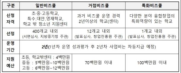 비즈쿨 교사들의 건의를 반영해 지정기간도 1년에서 2년으로 늘어난다. 1년간의 사업 성과를 평가해 1년 연장하는 방식이다.