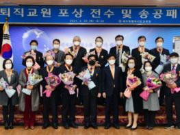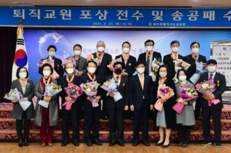제주특별자치도교육청은 2021년 2월말 퇴직교원에 대한 정부포상 전수 및 교육감송공패 수여식을 2월 25일 오전 10시 30분에 제주특별자치도교육청 대회의실에서 개최했다고 밝혔다.