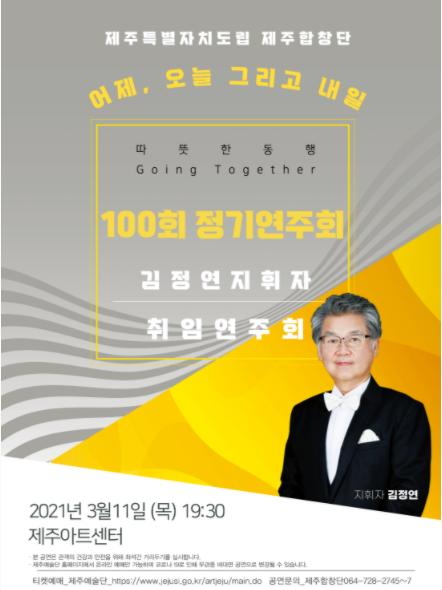 제주시는 ‘도립 제주합창단 제100회 정기연주회 및 김정연 지휘자 취임연주회’를 오는 3월 11일 오후 7시 30분에 제주아트센터에서 개최한다고 밝혔다.