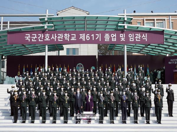 문재인 대통령은 5일 오후, 대전 자운대 국군간호사관학교에서 열린 제61기 졸업 및 임관식에 참석해 정예 간호장교로 거듭난 생도들을 축하했다.