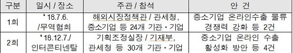 2018년 전자상거래 수출은 32.5억 달러로서 한류 등의 영향으로 전년 대비 25% 성장했다. 이처럼 급성장하는 글로벌 전자상거래 수출시장에서 물류, 통관 및 마케팅 등 분야에서 우리 중소기업의 애로사항을 해소하기 위해 ’18.7월 동 협의체가 발족됐다.