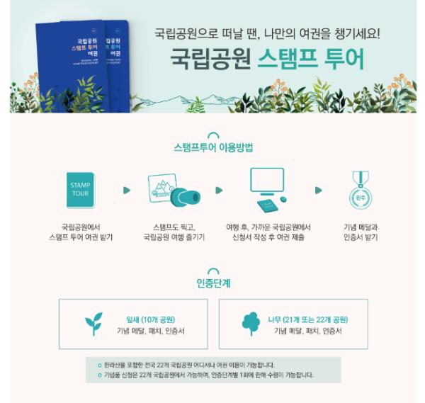 ‘국립공원 여권 여행(스탬프투어)’이란‚ 여권을 가지고 전국 국립공원을 방문하여 인증을 받으면 단계별로 기념품을 받을 수 있는 프로그램이다.