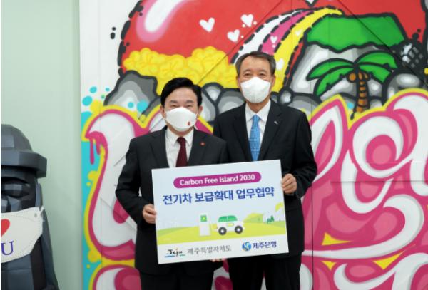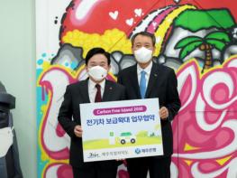 제주특별자치도가 NH농협은행에 이어 제주은행과 전기자동차 보급 및 정책 확대를 위한 상호 협력을 약속했다.