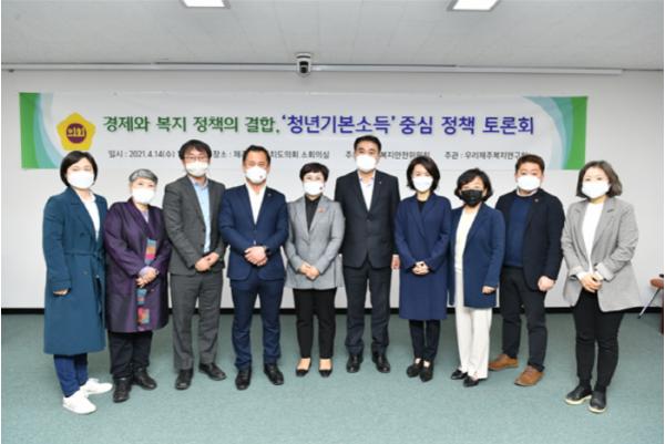 제주특별자치도의회 의원연구단체 우리제주복지연구회은 4월 14일 오전 10시 제주특별자치도의회 소회의실에서 경제와 복지정책의 결합으로서 ‘청년기본소득’ 중심 정책토론회를 개최했다.