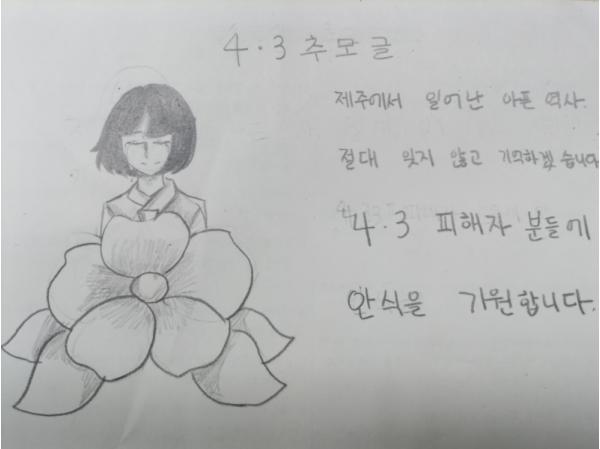 이번 프로그램에 참여한 1학년 학생은 “고등학교에 올라와 이렇게 새로운 방식으로 4‧3을 공부하니 제주도의 역사에 대해 더 관심을 가지게 되었다”며, “4‧3을 기억하기 위해 내가 직접 참여할 수 있는 일을 했다는 것도 뿌듯했다. 작은 행동이지만 4‧3과 관련된 분들게 위로가 되었으면 좋겠다”고 이야기를 남겼다.
