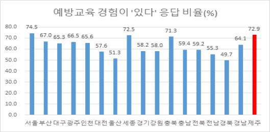 청소년 도박의 폐해에 대한 청소년들의 문제인식 응답이 전북(61.0%), 부산(60.6%)에 이어 제주(59.8%) 순으로 높으며, 도박문제 예방교육 경험 ‘있다’는 응답은 서울(74.5%), 제주(72.9%) 순으로 높고, 돈내기 게임의 위험성을 알리는 홍보물이나 캠페인을 접촉한 적이 ‘있다’는 응답도 서울(79.6%), 제주(76.4%) 순으로 높은 것으로 보아 도박중독 예방교육 강화에 따른 효과가 조금씩 나타나는 것으로 보인다.