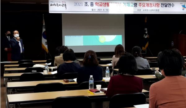 서귀포시교육지원청은 4월 19일부터 4월 20일까지 서귀포시교육지원청 3층 대강당에서 관내 초, 중학교 교무부장, 업무담당자, 교육전문직원을 대상으로 2021학년도 학교생활기록부 기재요령 및 학업성적관리지침 연수를 실시한다.
