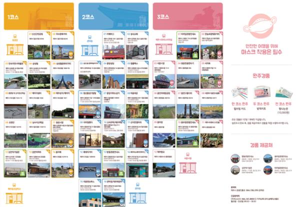완주경품으로는 ▲1개 코스 완주 시 각 코스 주요 지점의 모습을 담은 컬러링 카드 1세트, ▲2개 코스 완주 시 마스크‧손소독제가 들어있는 방역키트, ▲3개 코스 완주 시에는 탐나는전 1만원 권이 지급된다.