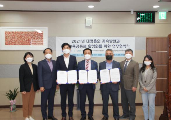 서귀포시교육지원청은 지난 4월 23일 서귀포시 대정읍도시재생현장지원센터 및 최남단 대정읍마을관리사회적협동조합과 대정읍 지속 발전과 마을교육공동체 활성화를 위한 3자 업무협약을 체결하였다.