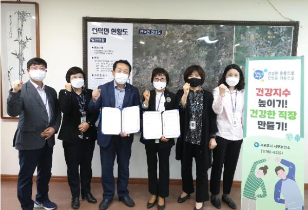 서귀포시 서부보건소(소장 고행선)는 지난 27일 안덕면과‘건강지수 높이기! 건강한 행복드림 일터 만들기’를 위한 업무 협약을 체결했다.