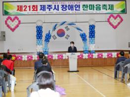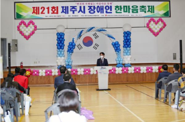 이상헌 제주시 부시장은 4월 29일, 제주시 조천체육관에서 ‘제41회 장애인의 날 기념 행사’의 일환으로 열린 ‘제21회 장애인 한마음 축제’에 참석해 제주시장 장애인복지 유공자 표창을 대리 수여했다.