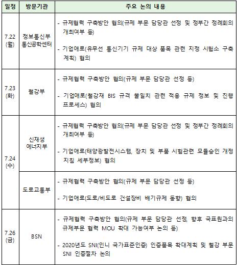 산업통상자원부 국가기술표준원은 지난 22일부터 26일까지 신남방정책 핵심국인 인도, 인니 기술규제당국을 방문하여 우리 수출기업의 기술규제 애로 해소를 위한 양자회의를 개최하고, 상호협력 방안을 논의 했다고 밝혔다.