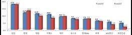 건축업종 중에서 ‘아파트’는 지에스건설·대우건설·대림산업 순이고, ‘업무시설‘은 현대건설·대우건설·삼성물산순이며, ’광공업용 건물’은 삼성물산·에스케이건설·지에스건설 순이다.