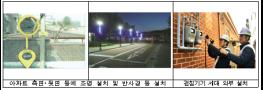 예를 들면, 창문은 침입 방어성능을 갖춘 제품을 사용하여야 하며, 담장은 사각지대가 생기지 않도록 계획하여야 한다. 그리고, 주차장에는 영상정보처리기기와 조명을 설치 하여야한다.