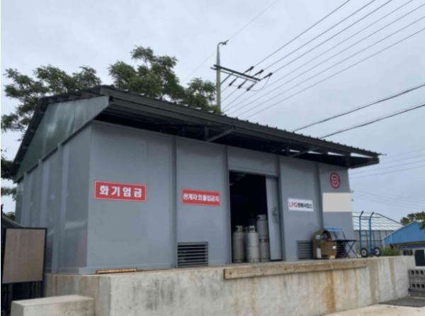 용기보관실 벽은 철근콘크리트 방호벽 또는 콘크리트블럭제 방호벽으로 설치한다. 강판제 방호벽은 도서 특성상 부식에 취약하여 제외하며, 그 외 사항은 액화석유가스 판매의 시설‧기술‧검사 기준의 용기보관실 설치기준을 준용하여 안전성 확보에 최선을 다할 것이다.