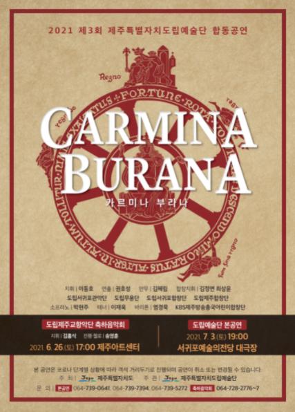공연에는 도립서귀포합창단과 소프라노 박현주, 바리톤 염경묵이 출연해 ‘오 운명의 여신이여’ 합창을 비롯한 카르미나 부라나의 주요 곡목뿐만 아니라 ‘남촌’, ‘나는야 이 거리의 만물박사’와 같은 대중들에게 친숙한 성악곡을 들려준다.