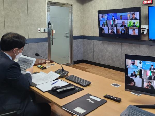비대면으로 개최한 간담회에는 문영봉 교육국장을 비롯해 진규섭 대정고 교장, 박종관 제주중앙여고 교장과 고동민 교사, 양순우 서귀포여고 교감과 고지수 교사, 오희숙 제주고 교감과 박진수 교사가 참석했다. NLCS 제주 박찬혁 학생과 경상남도 밀양교육지원청 조정희 장학사도 함께 했다.