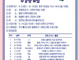수강생 모집은 5월 14일부터 홈페이지를 통해 시작하고, 프로그램은 6월 5일부터 8월 14일까지 매주 토요일 오후 2시에 진행되며, 총 10회 과정으로 운영된다.