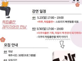 23일 오후 3시에는 스토리지북앤필름 강영규 대표가 ‘하루, 독립출판’을 주제로 강연할 예정이며, 30일 오후 3시에는 더쿠 편집장이 ‘더쿠의 출판 기획, 덕질이 책 한권이 되기까지’를 주제로 독립출판 제작 과정에 관한 이야기를 들려줄 예정이다.