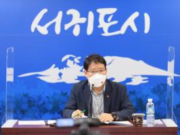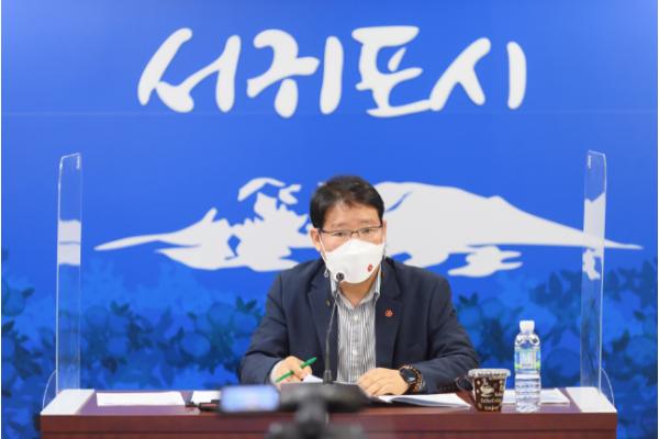 서귀포시는 14일 9시 서귀포시청 본관 셋마당에서 이양문 부시장 주재로 ‘제394회 도의회 임시회 도정질문 처리계획 보고회’를 PC영상회의로 개최하였다.