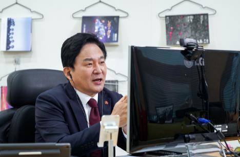 원희룡 지사는 20일 오전 8시 30분 제주도청 집무실에서 진행된 세계자원연구소(WRI : World Resources Institute)와의 화상 기자회견에서 주제 발표를 통해 우리나라의 탈석탄·온실가스 감축 정책 추진 방향에 대해 제시했다.