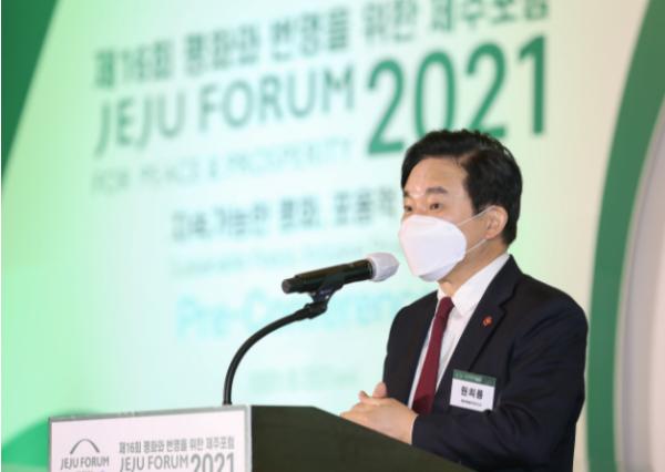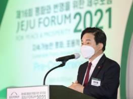 원희룡 지사는 25일 제주 해비치 호텔 앤 리조트 크리스탈홀에서 열린 제16회 제주포럼 프리 컨퍼런스에서 기조사를 통해 젊은 세대들이 직면하고 있는 현 사회의 문제점을 지적하는 한편, 청년들의 긍정적이고 진취적인 미래 비전에 대해 제시했다.
