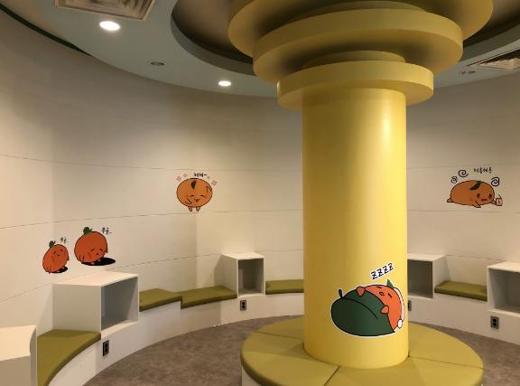 이 가운데 전시관 내부 관람객 휴게공간은 제주감귤의 홍보를 위하여 (사)제주감귤연합회의 협조 아래 무상제공받은 감귤 이모티콘 캐릭터가 디자인에 활용되어 관람객들에게 인기를 끌고 있다.