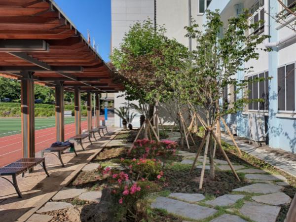 이번 사업으로 교내 소외되었던 유휴공간에 교·관목 애기동백 외 25종 2,538주, 초화류 수선화 외 7종 7,290본을 식재하였으며, 주요동선에 판석포장 및 옥외용 벤치 등을 설치하여 꽃이 피고 녹음이 우거지는 녹색공간으로 재탄생 시켰다.