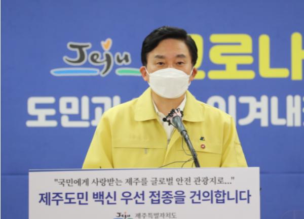 제주특별자치도 원희룡 지사가 본격적인 여름 휴가철을 대비해 국민들이 찾는 제주도의 조기 집단면역 형성을 위해 제주도민 우선 백신 접종을 정부에 공식 건의했다.