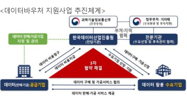 데이터바우처 지원사업은 데이터의 활용의지가 있음에도 인력 부족과 비용 부담 등 열악한 상황에 의해 소외됐던 중소기업, 1인 기업, 스타트업 등의 여건 개선을 위해 공급 기업으로부터 필요한 데이터를 활용하기 좋은 형태로 제공받을 수 있도록 바우처(이용권)를 지원하는 사업이다.