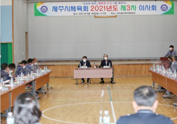 안동우 제주시장은 18일 사라봉 다목적체육관에서 개최된 ‘제주시체육회(회장 김종호) 제3차 이사회’에 참석하여 관계자를 격려했다.