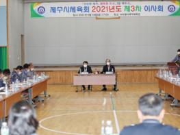 이날 제주시체육회 제3차 이사회는 본회 법인설립 결과, 회원종목단체 임원인준 및 규약 승인에 대한 보고와 2021년 세입세출 추가 경정예산(안) 및 생활 체육동호인리그 개최 등에 관한 사항을 논의했다.
