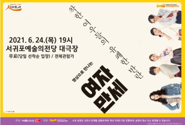 서귀포시에서는 오는 24일 저녁 7시 서울예술의전당에서 공연한 연극「여자 만세」을 서귀포예술의전당 공연장에서 상영한다고 밝혔다.