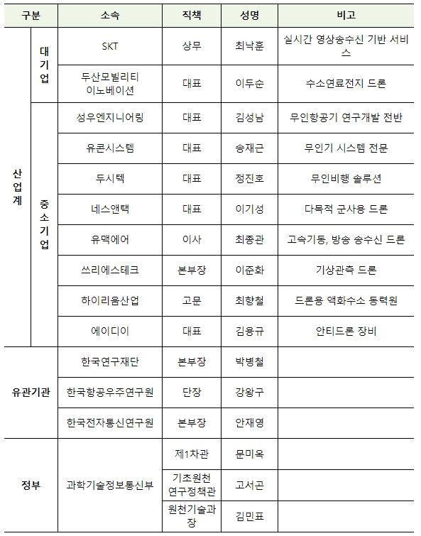 간담회에는 SKT, 두산모빌리티이노베이션 등 대기업과 유콘시스템, 성우엔지니어링, 두시텍 등 중소기업, 한국항공우주연구원, 한국전자통신연구원 등 유관기관이 참석했다.