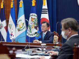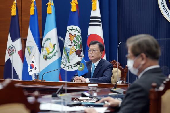 문재인 대통령은 25일 오전 9시 중미통합체제(SICA) 회원국 8개국 정상 및 SICA 사무총장과 ‘제4차 한-SICA 정상회의’를 화상으로 개최했다.