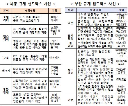 이번에 선정된 사업들을 살펴보면, 세종은 헬스케어, 생활·안전, 모빌리티 순, 부산은 헬스케어, 로봇, 안전 순으로, 건강이나 안전과 같이 시민의 생활과 밀접한 분야의 서비스 비중이 높은 것으로 나타났다.