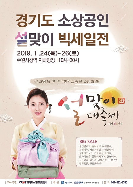 ‘이 제품을 이 가격에? 실속을 쇼핑하라’는 주제로 수원시청역에서 개최되는 1차 오프라인 빅세일전에는 심사를 거쳐 선발된 50여 개 소상공인들이 설날을 앞두고 다양한 선물·생활·제수용품을 선보인다.