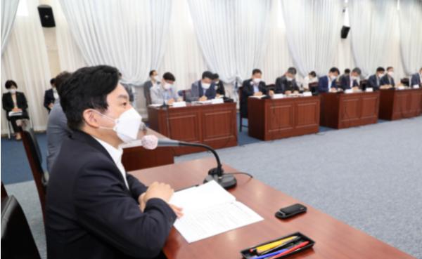 이날 회의에서는 2021 하반기 인사이동에 따른 신임 실·국장 인사와 함께 원희룡 지사의 인사말이 이어졌다.