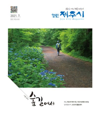 제주시는 '숲길에서 너를 담다'을 표지로 한 시정소식지 「열린제주시」 2021년 7월호(통권 제180호) 8,000부를 발간하여 도내·외에 배포한다.
