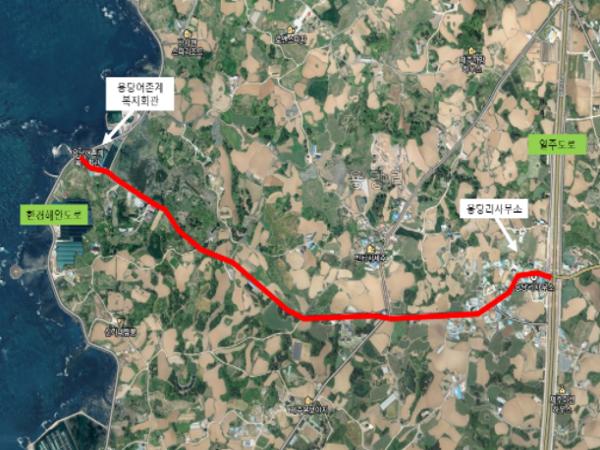 제주시에서는 용당리 사무소(일주도로)와 용당어촌계 복지회관(한경해안도로)을 연결하는 수용선 농어촌도로(총 연장 3.3km)에 대하여 본격 공사를 시행한다고 밝혔다.