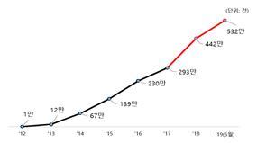 제도 개편 이후 다양한 전자문서 유통 플랫폼을 보유한 사업자가 신규 공인전자문서중계자로 지정됨에 따라, 공인전자문서중계자를 통한 2018년 및 2019년 상반기의 전자문서 유통량은 2017년 대비 각 50.6%, 81.1% 증가했다.