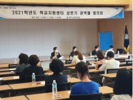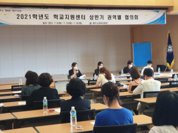 제주시교육지원청은 7월 6일 제주시교육지원청 대회의실에서 2021학년도 학교지원센터 지원학교 87교(유 36, 초 27, 분교장 5, 중 19교)를 대상으로 상반기 권역별 협의회를 개최하였다.