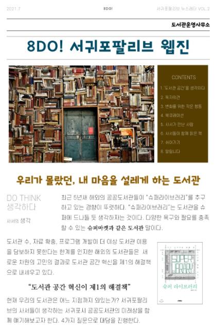 서귀포시는 지난 7월 5일 공공도서관 웹진 8DO 2호를 제작‧발행했다.