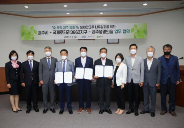 제주시와 국제로터리3662지구, 제주생명의숲은 시민들이 조성·관리에 적극 참여하는 것이 나무심기 사업의 정착에 중요하다는 인식을 나누고 500만그루 나무심기의 성공적인 추진을 위해 함께 힘을 모으기로 했다.